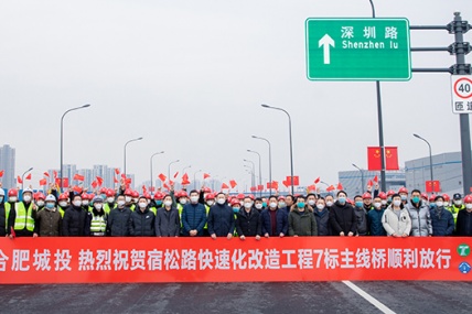 12月26日上午,由合肥市建投集團所屬城投公司建設管理,安徽省交通建設股份有限公司承建的宿松路快速化改造工程7標段高架橋、地面道路同步放行通車。