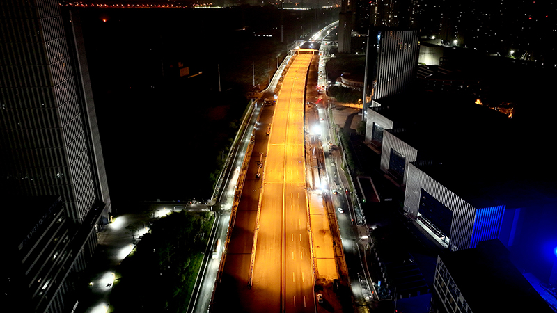 本次建成放行的花園大道跨線橋共計4聯12跨,全長420m,其中3聯現澆預應力砼連續箱梁、1聯鋼箱梁。該橋自去年11月22日首根樁基施工以來,于今年2、3月先后完成首聯現澆箱梁澆筑、首片鋼箱梁架設工作,至建成通車用時188天。