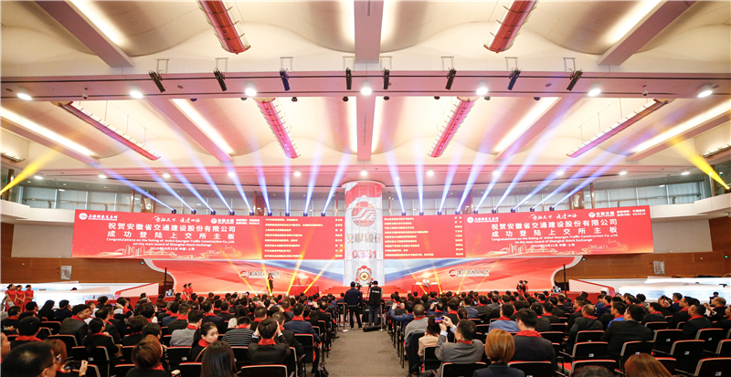 合肥市委常委、常務副市長羅云峰,合肥市廬陽區委書記單虎前往觀禮,并與祥源控股集團董事長、交建股份實際控制人俞發祥,安徽省交通建設股份有限公司董事長胡先寬共同為安徽省交通建設股份有限公司A股股票交易鳴鑼開市。300余位各界人士共同見證這一時刻。