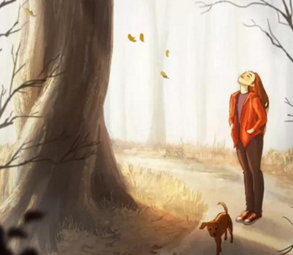 蔚藍的天空,飄落下羽毛和樹葉,