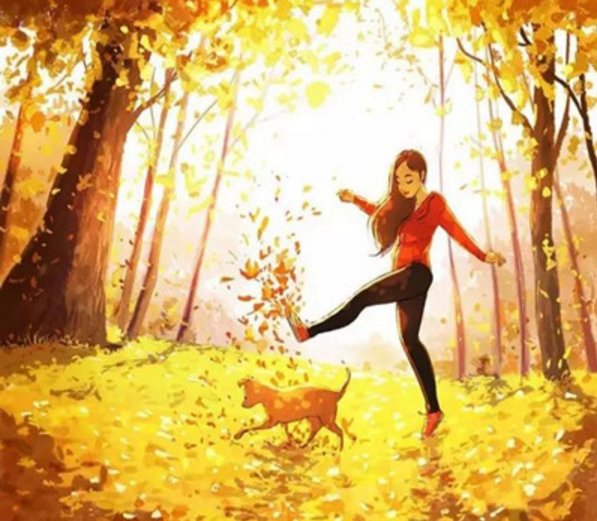 喜歡跟隨旋轉的秋葉放空自己,在好聞的空氣里享受愉悅,