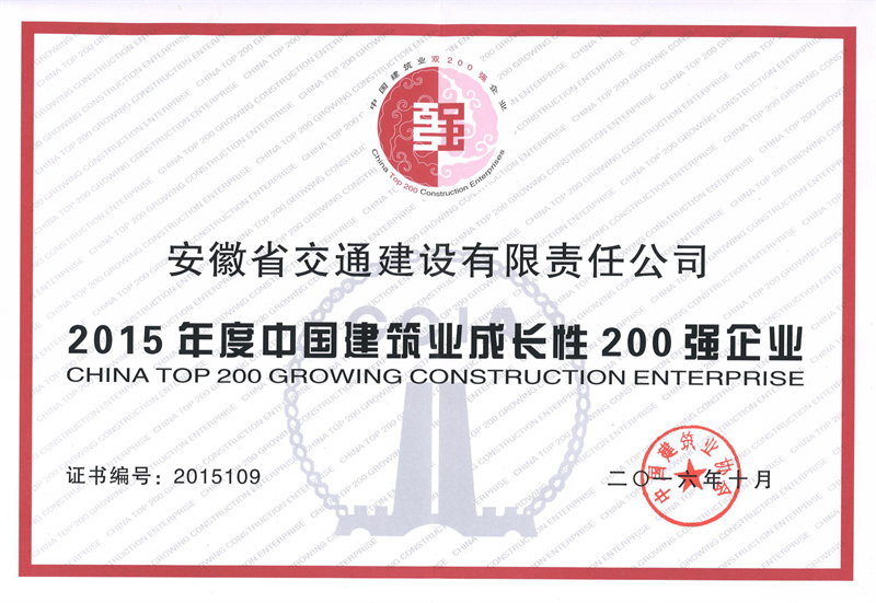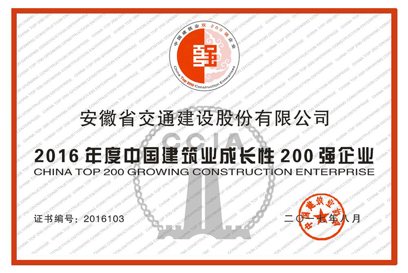 2016年度中國建筑業成長性200強企業
